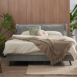 Sleep in style with the WING Bed Frame, designed for modern homes that love a clean and trendy look. Its signature winged headboard gives the bed a cool, cosy vibe—perfect for leaning back to read or relax. The full fabric upholstery feels soft and welcoming, and the headboard cushion cover can be removed for easy washing.