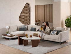 Our collections feature modern living room furniture with a monochromatic palette, enhanced by subtle textures and refined finishes. Streamlined sofas in neutral tones offer a sophisticated foundation, while geometric coffee tables and minimalist TV stands add elegance and practicality. The incorporation of high-gloss lacquer and polished metal materials further enhances the modern aesthetic, creating a harmonious and contemporary living environment.