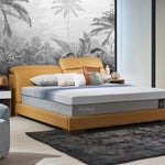 Supported by light walnut-finished solid Sungkai legs, this bed stands strong while bringing natural warmth to your room. Whether you're living in a spacious apartment or a landed home, FLIQ blends beautifully into any modern bedroom.