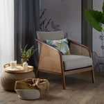 Meet the NASH Sofa—a perfect blend of modern design and rustic charm. Upholstered in full fabric for a soft and cosy feel, the sofa is supported by a sturdy, solid Sungkai timber frame in a light walnut finish. The woven rattan accents add a touch of traditional craftsmanship, bringing warmth and texture to any contemporary interior.
