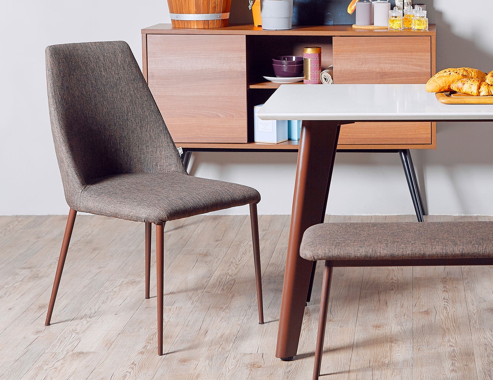 The Henry Dining Chair is all about simple comfort and modern charm. With its soft fabric seat and tapered steel legs, this chair fits beautifully into any dining room — whether you live in a cosy apartment or a spacious home.