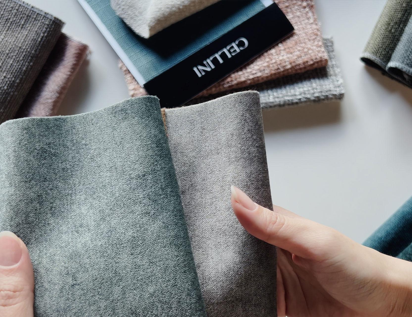 Can I see samples of upholstery fabric used in Cellini's dining chairs?