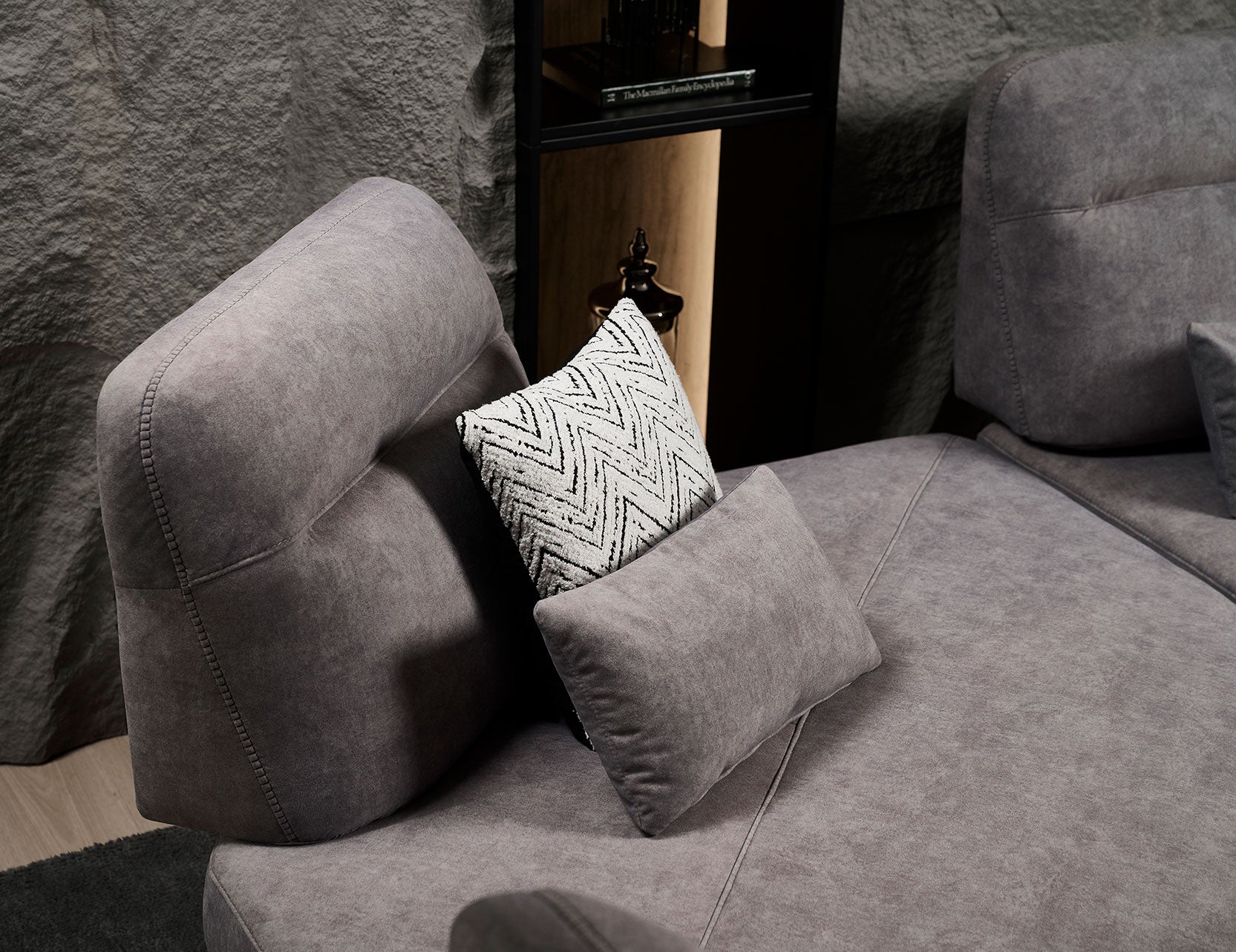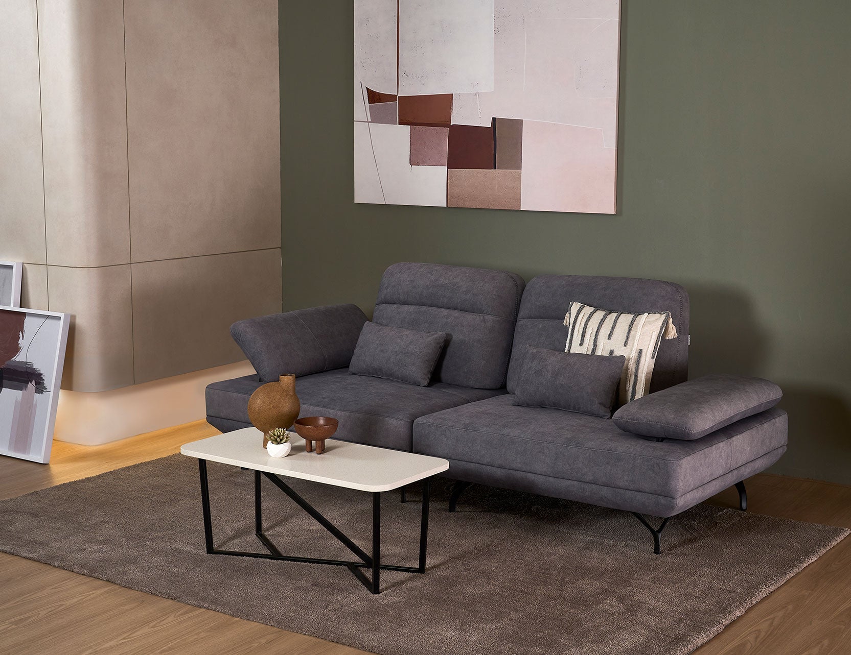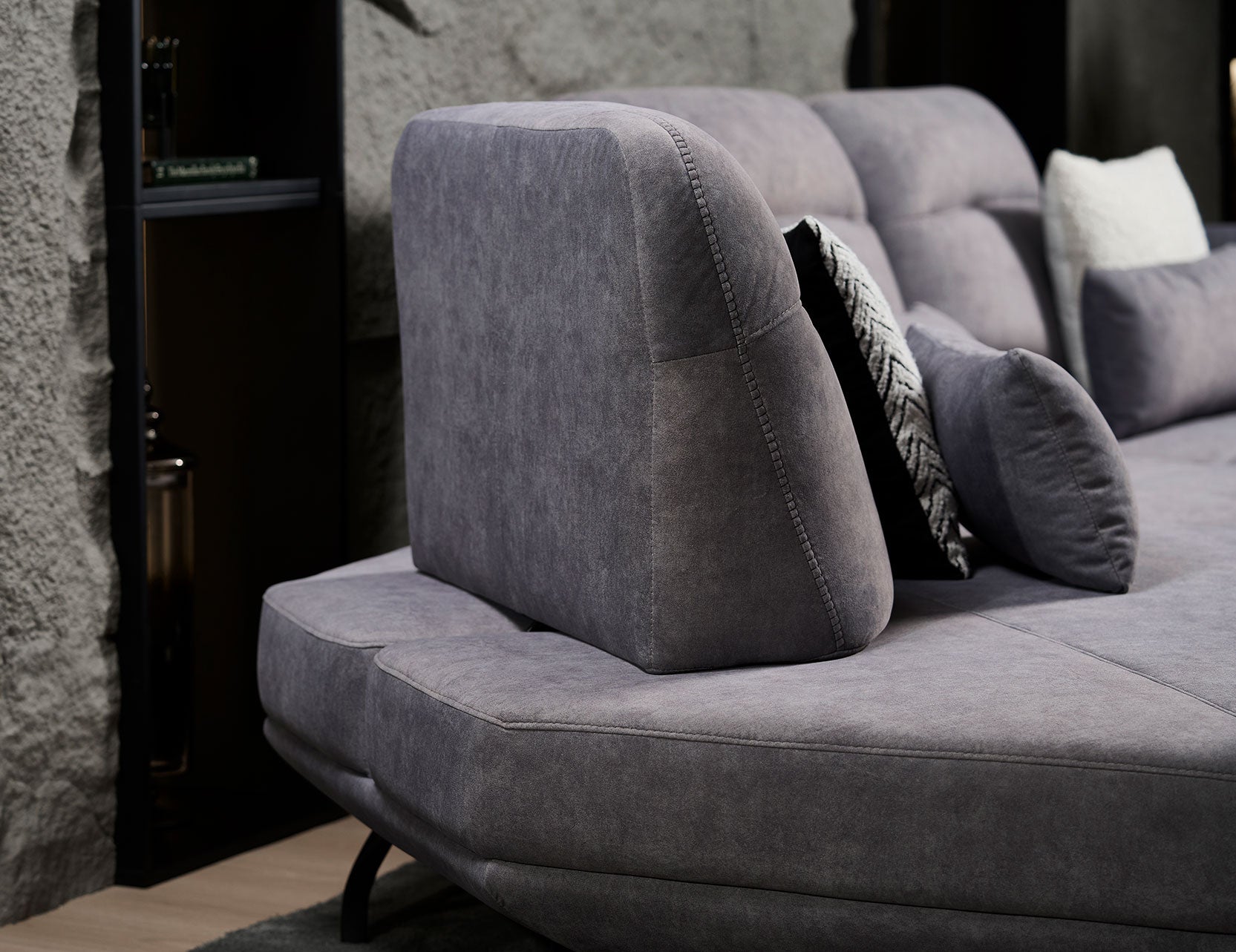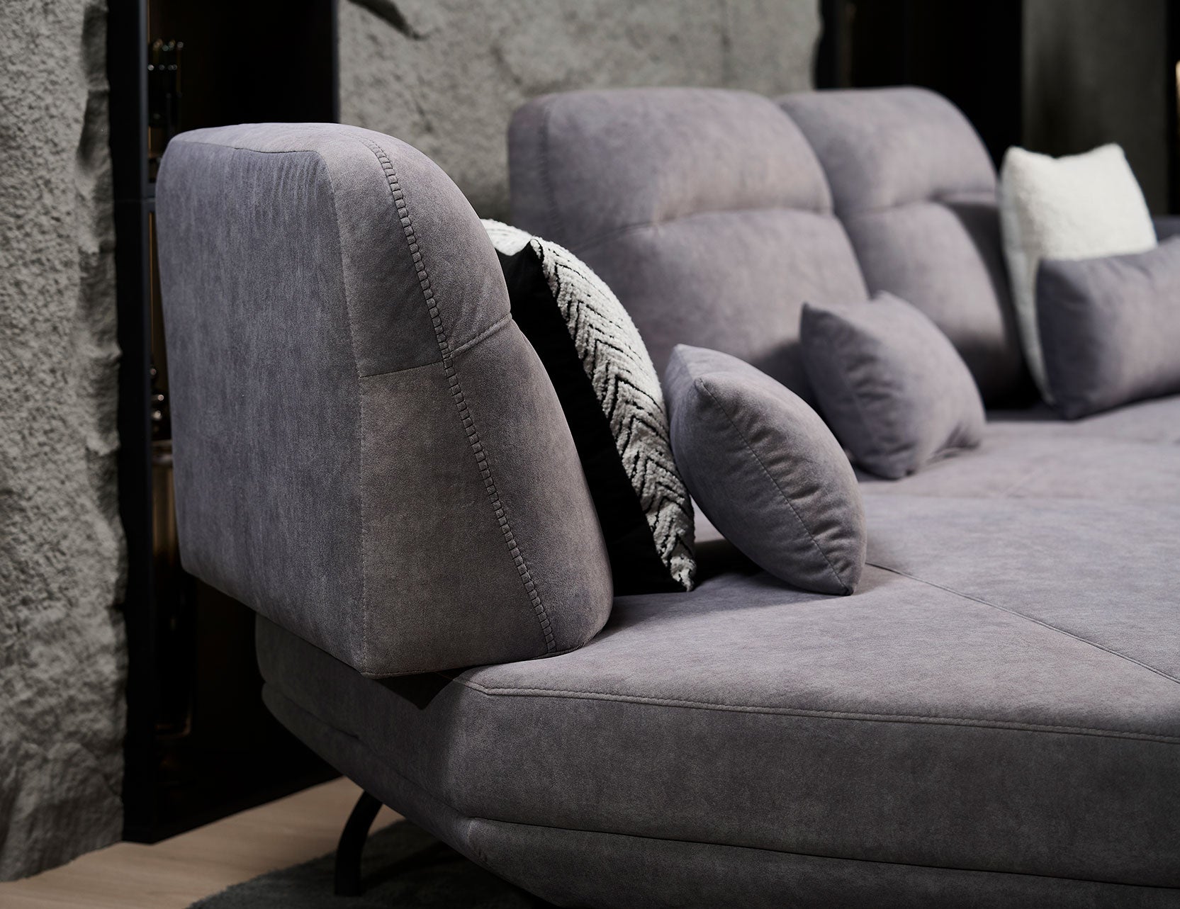 The standout feature is its manually adjustable push-back backrest mechanism, which lets you customise your seat depth from a regular position to a more relaxed, deeper setting. With a convenient strap for easy adjustments and armrests that can be angled for optimal arm support or used as a cosy pillow for napping, this sofa is as versatile as it is stylish.
