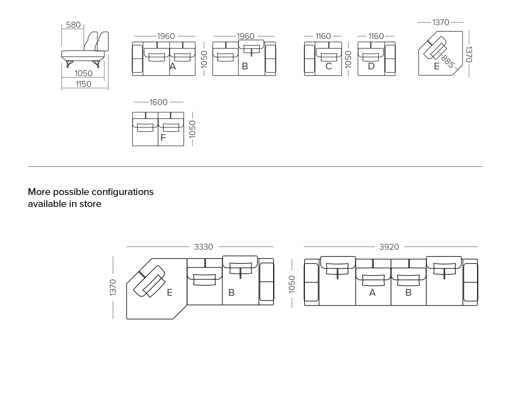 More sofa configurations and swatches available in store