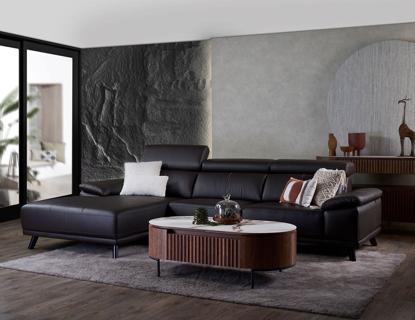The KOF Sofa brings a touch of European elegance and grand proportions to your living space, designed to make a statement in medium-to large homes. Upholstered in luxurious full leather or a blend of full and synthetic leather, it combines sleek aesthetics with superb comfort.