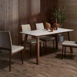 The legs may look like wood, but they’re actually strong steel wrapped in real American walnut veneer—so you get the charm of timber with the strength of metal. Their slanted shape gives the table a modern, dynamic edge, making it feel lighter despite its sturdy form.
