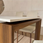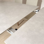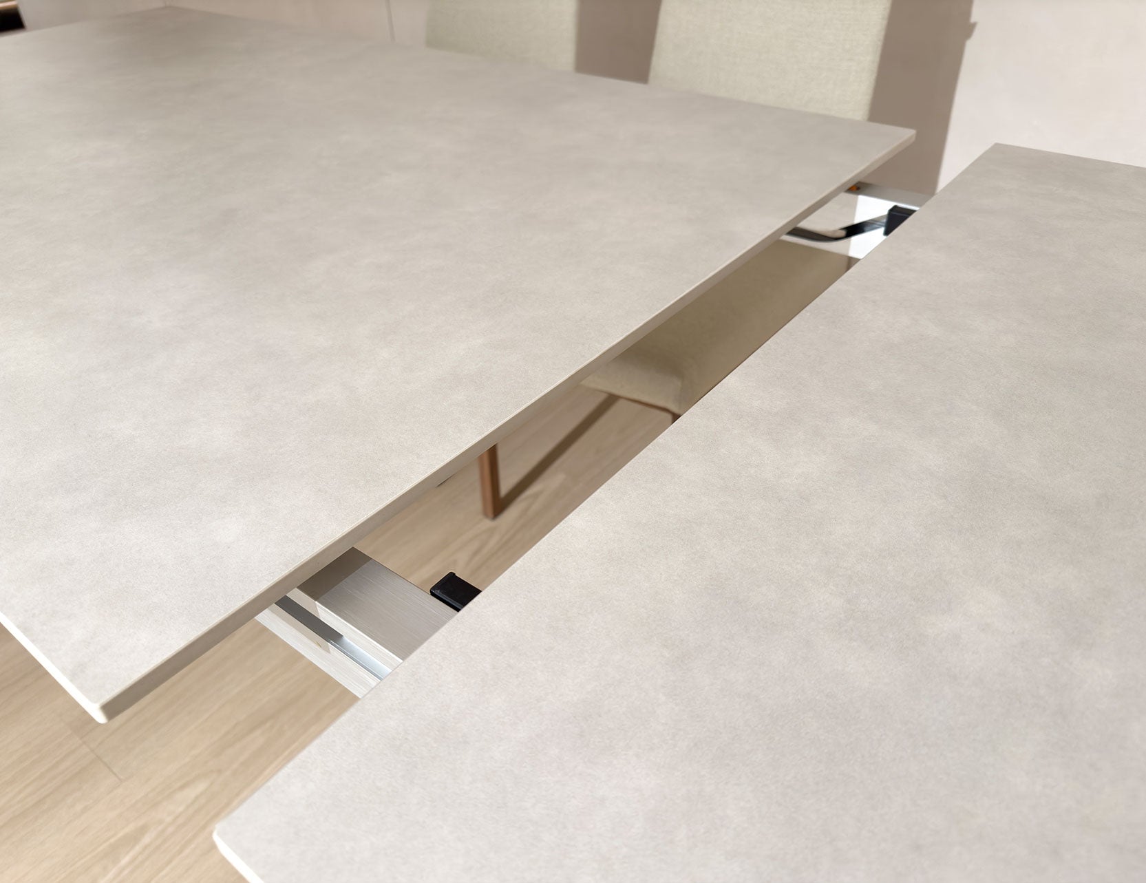 The extension mechanism is effortless to operate, allowing you to adjust the table length smoothly and efficiently. Whether placed against a wall or as a centrepiece, the thin, sleek top and durable sintered stone surface—resistant to scratches, heat, and stains—ensures lasting beauty and practicality.