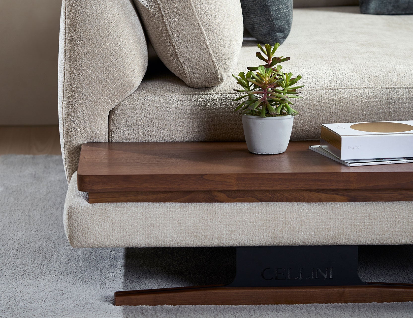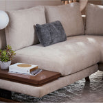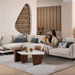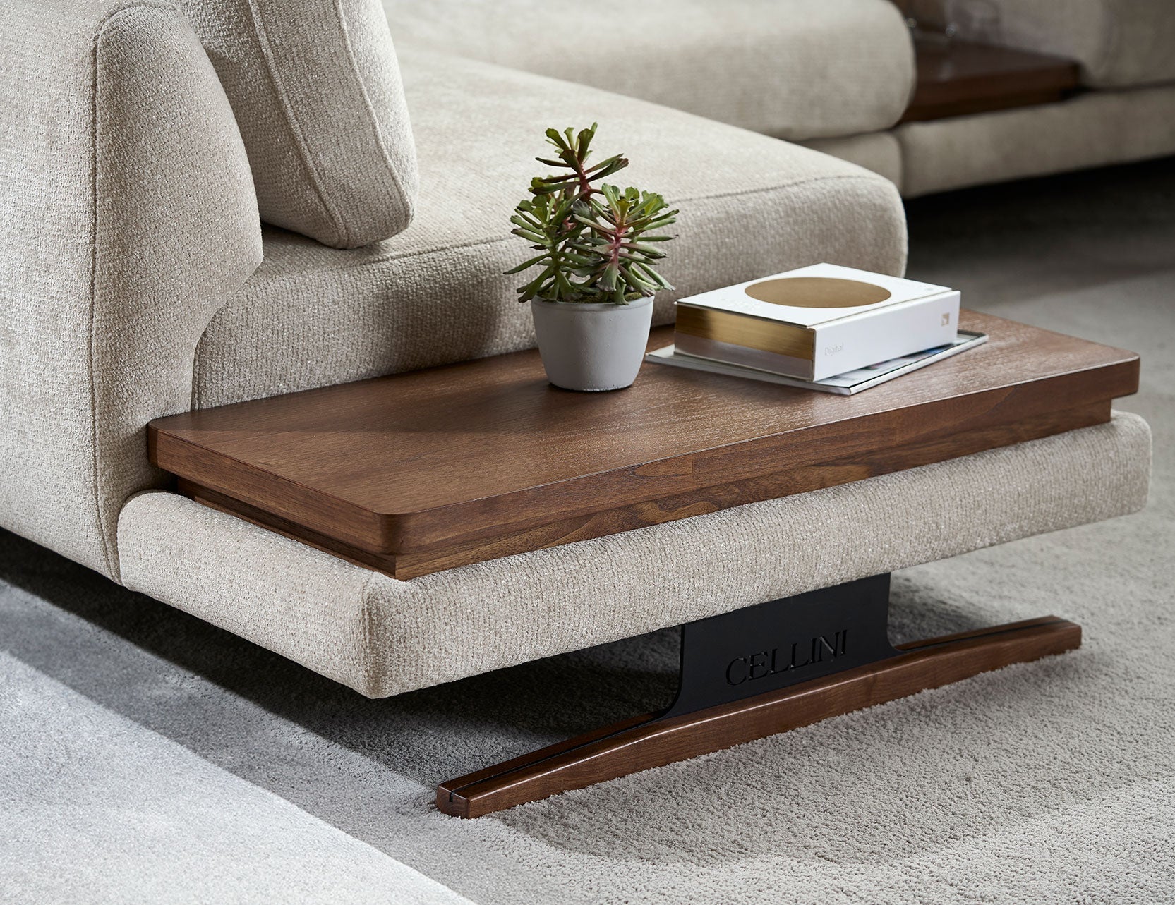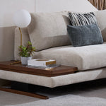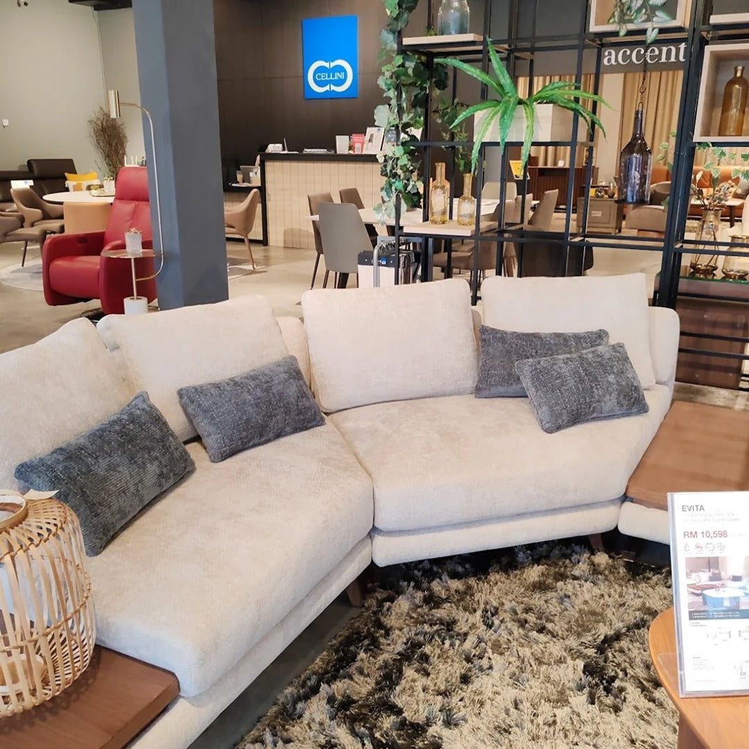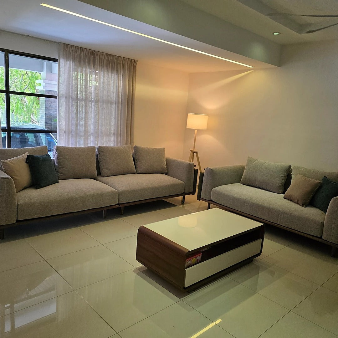 The newly updated modular sofa, where functionality meets style seamlessly. Each module is designed to create a spacious configuration for your living spaces. The armrest is unique on its own, as it comes with removable covers featuring convenient Velcro closures. With this feature, keeping your furniture fresh and stylish is easy as a quick change. The seats and backrest follow suit, as it is hassle-free on maintenance. The steel sheet metal legs are powder-coated in a matte black finish with laser-cut Cellini branding, adding a touch of personalisation to your furniture, complementing the warmth of sungkai timber finish in a light walnut hue. The main highlight would be the side coffee tabletop, perfect for an expansive configuration and those precious small spaces. It is not just a table; it’s your versatile companion.