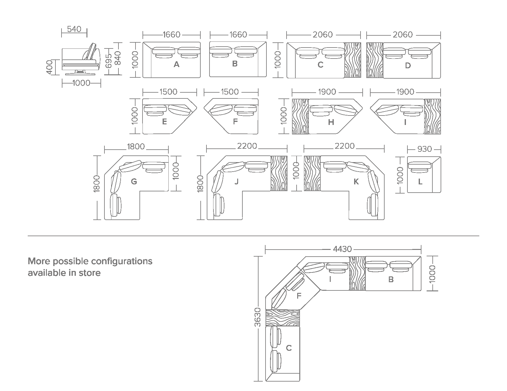 More sofa configurations and swatches available in store