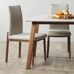 Flex dining chair is a modern luxe piece with earthy tones. It’s unique metal frame is bonded with American walnut veneer for the beauty of wood with the strength of metal. This dining chair combines stylish city living with an essence of nature’s warm tones, a gorgeous addition to any dining space. Best paired with the Bolda quartz top dining table.