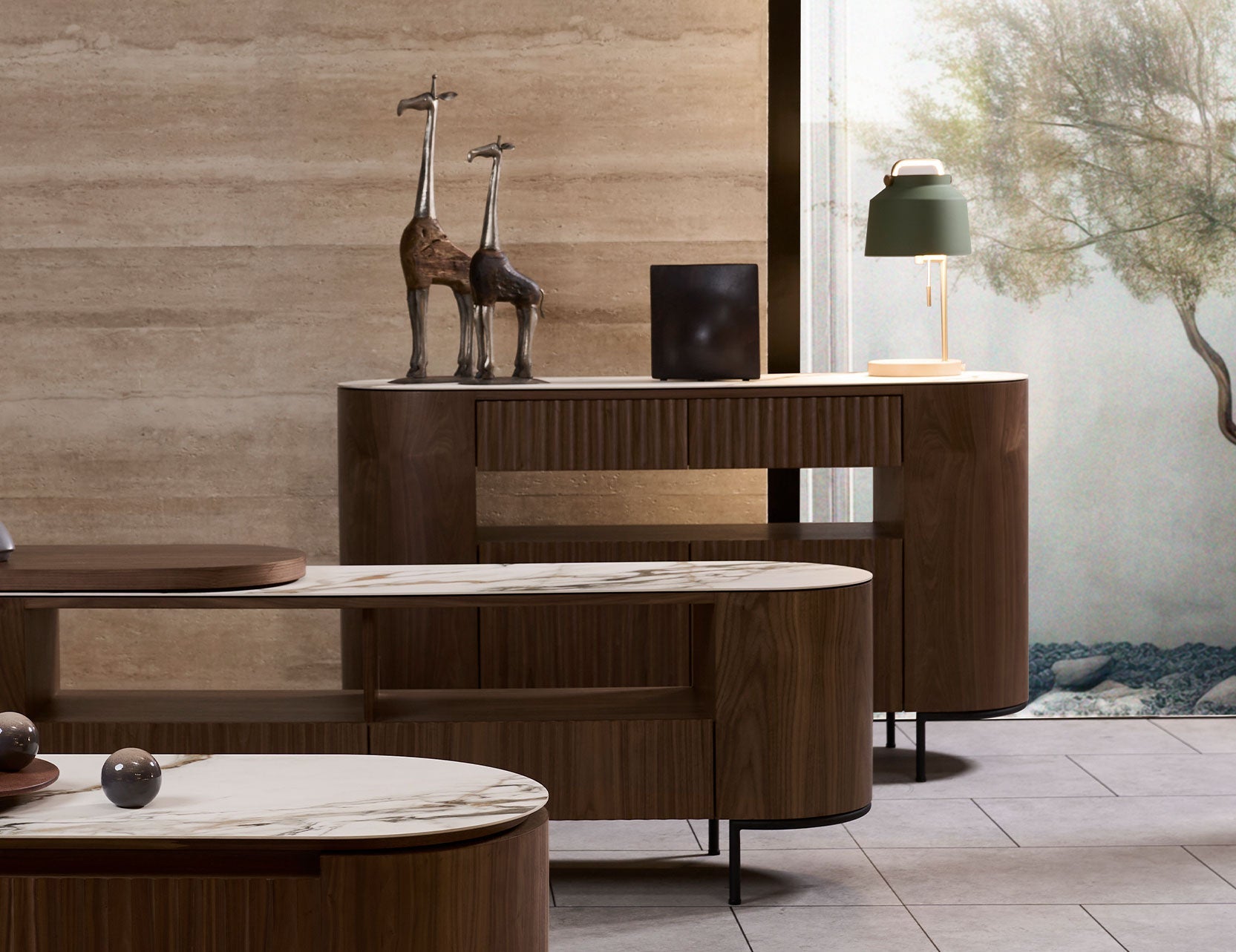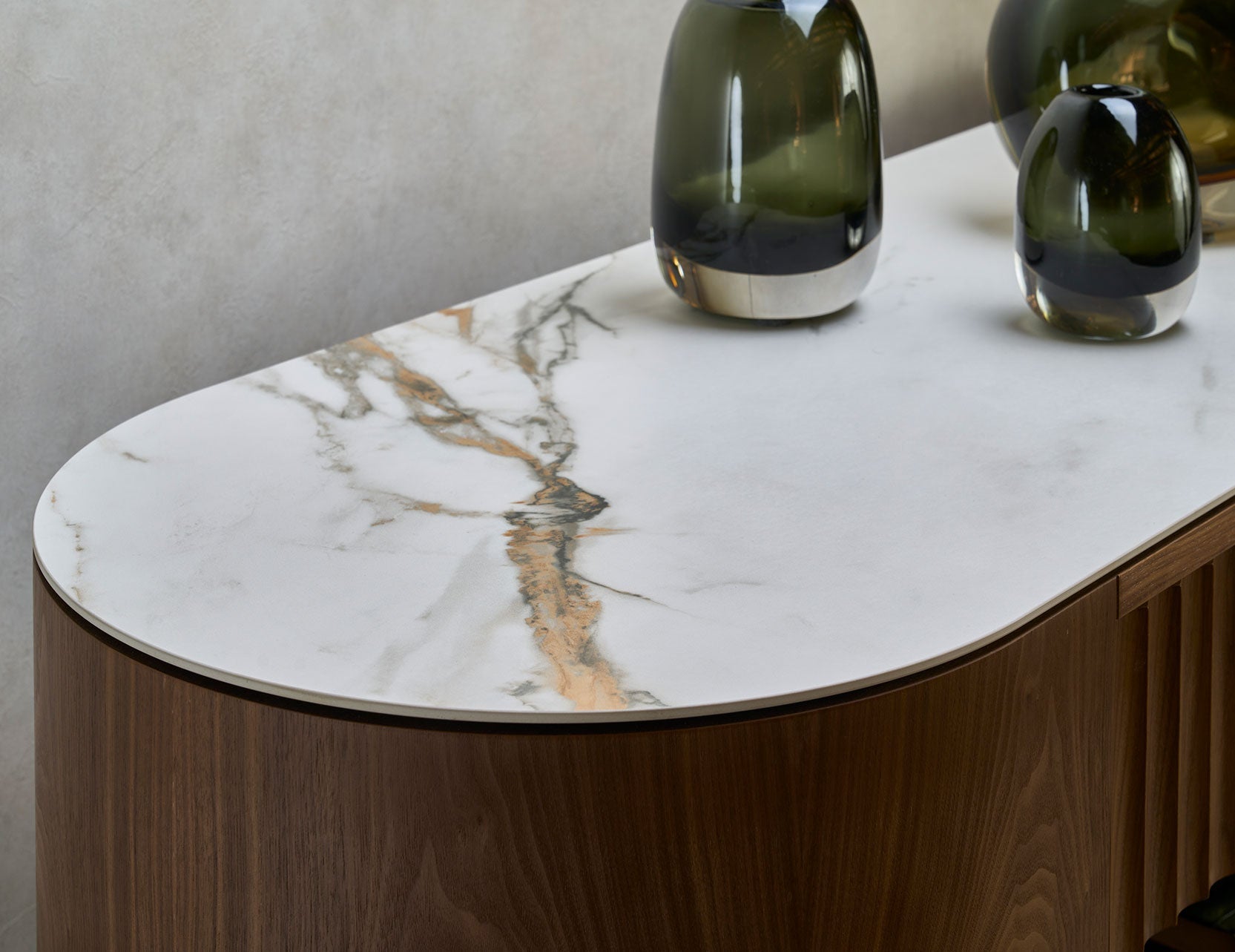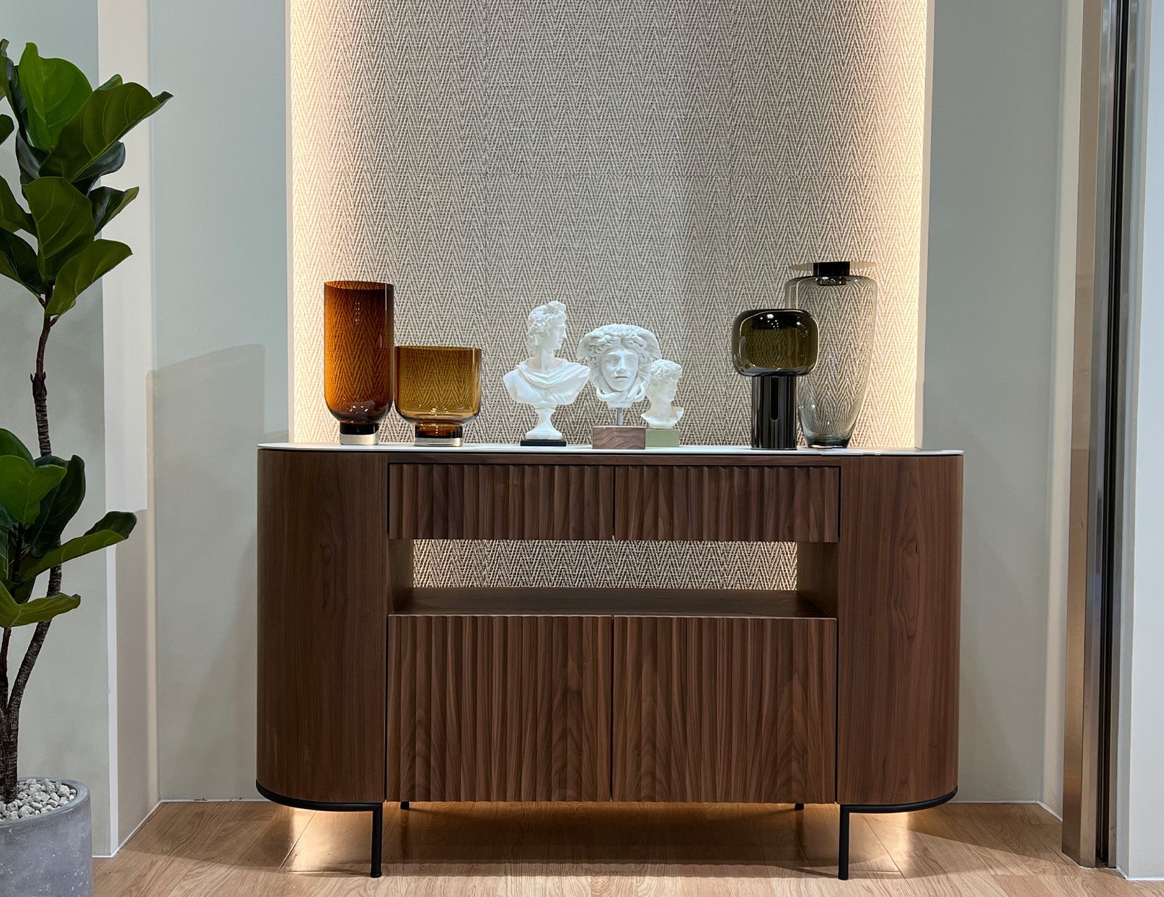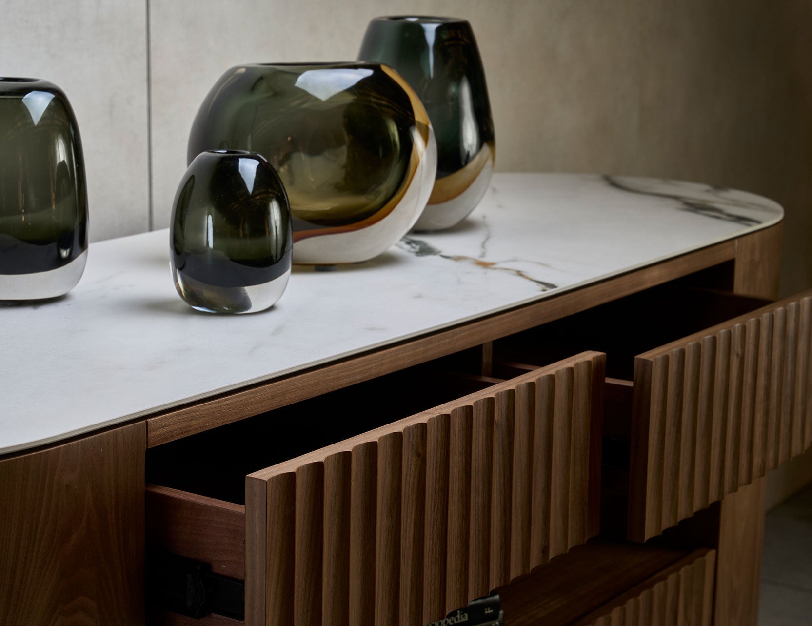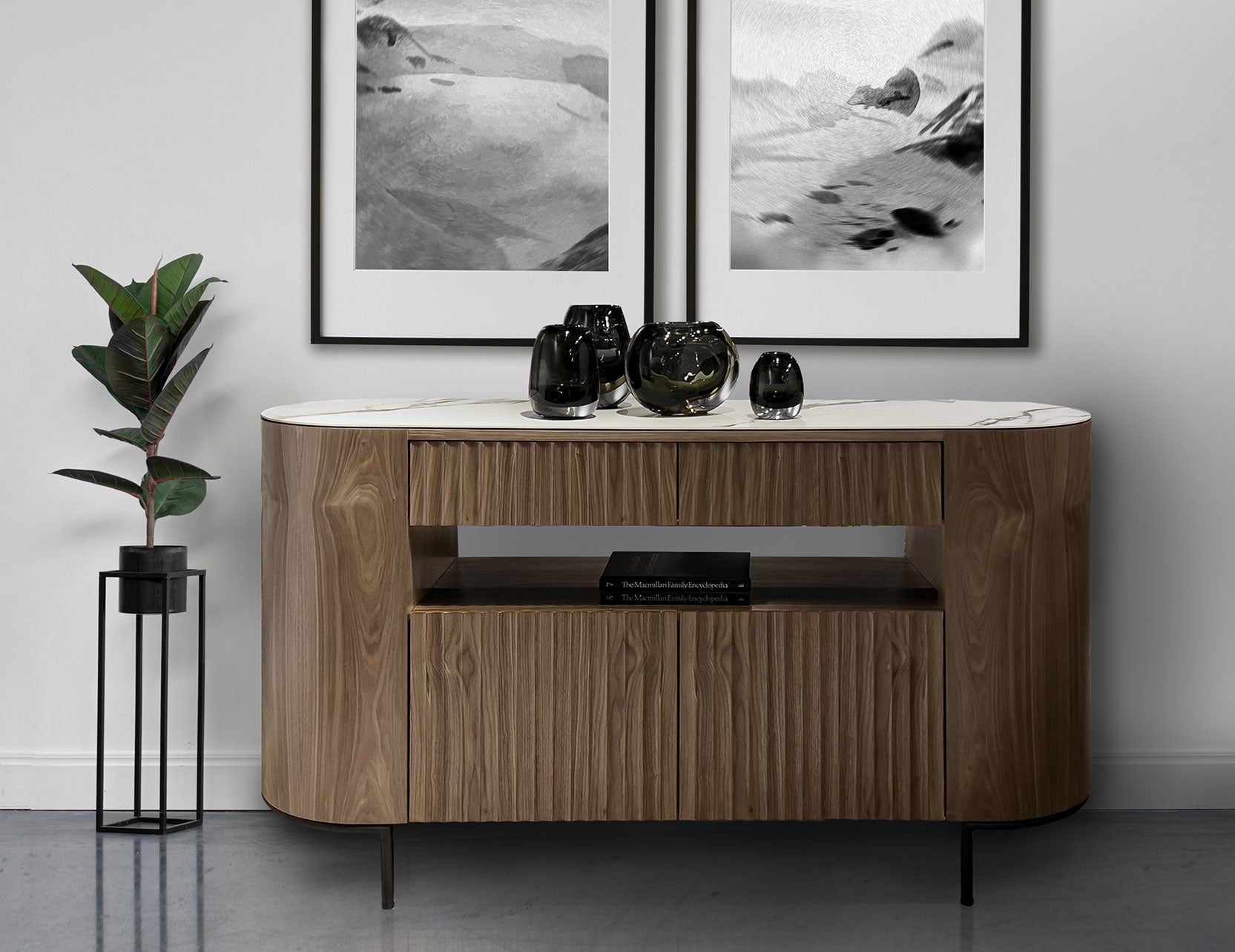 FLUTO Walnut with Sintered Stone Top and Steel Legs Sideboard